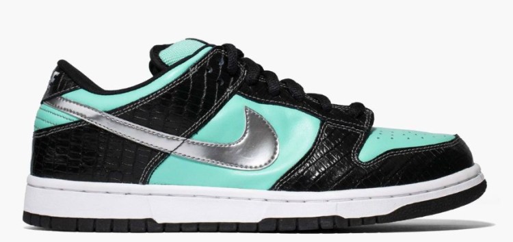 Nike aveva inoltre già fatto una collaborazione in cui spiccava il color Tiffany: Diamond Supply Co. x Nike SB Dunk Low “Tiffany”. Il modello è stato disegnato nel 2005 da Nick Diamond dello store online Diamond Supply Co. e si caratterizza per pelle nera con texture di coccodrillo e pelle liscia color azzurro Tiffany. Ad oggi sono molto difficili da trovare e i prezzi online si aggirano sui 4000 dollari.