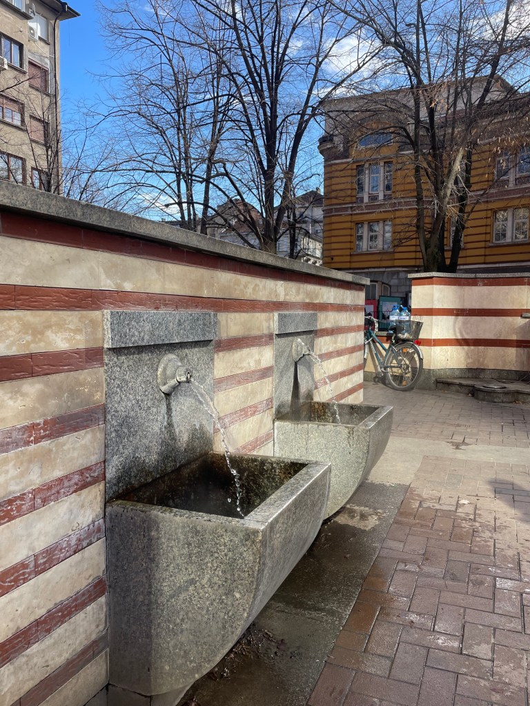 A differenza di Roma, dove le fontanelle sono dislocate per tutta la città, a Sofia sono tutte riunite in un unico luogo. 40 fonti d’acqua, nei pressi del Museo di Storia. L’acqua si può prendere totalmente gratuitamente e gli abitanti vengono regolarmente con grosse taniche a fare rifornimento.