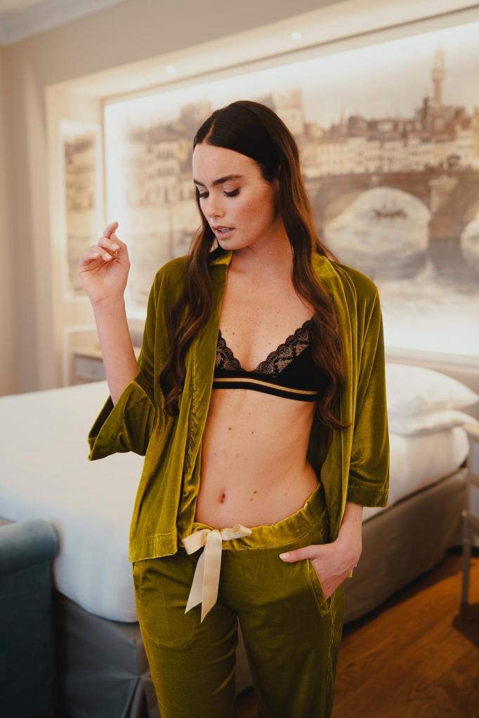 Non solo intimo. Il velluto di Caramì si estende anche ai capi loungewear e activewear, reinterpretando il concetto di comfort con un’attitudine chic. Tagli essenziali, tessuti morbidi e una palette sofisticata raccontano un lusso intimo e versatile, fatto per accompagnare la donna in ogni momento della giornata — dal risveglio lento del mattino a una passeggiata in città.